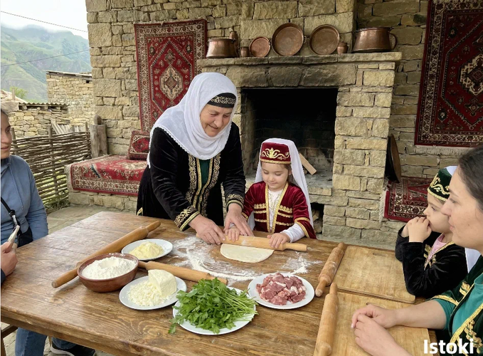 Обед для вас приготовит хозяйка дома, настоящий кулинар, мастер своего дела. Вы попробуете блюда, которыми гордится гостеприимный Южный Дагестан. На «скатерти-самобранке» будут наваристый бозбаш, плов из полбы, 4 вида чуду: с мясом, творогом, тыквой, зеленью, домашний сыр, овощи. На десерт вам предложат чай с чабрецом, компот из винограда и вишни, халву, варенье из кизила и инжира, а также жжёный сахар на молоке и сухофрукты.