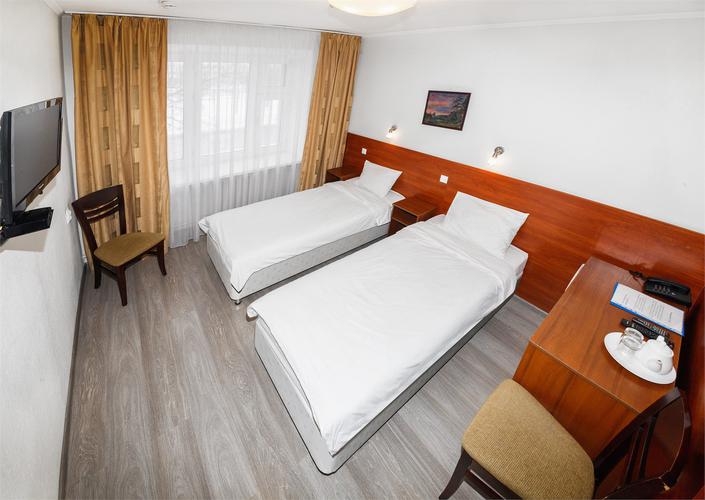 Все номера с санузлом, с душевой кабиной. В каждом номере стандартный набор мебели, кровати односпальные, раздельностоящие, чайник, посуда для чая, телевизор, мини-холодильник.