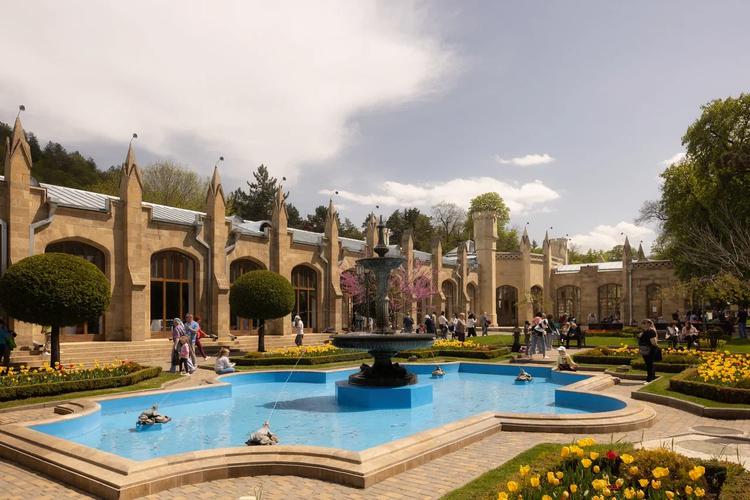 9.30 – Пешеходная экскурсия по курортному парку, далее нижний парк и стеклянная струя, нарзанная галерея- главное здание Кисловодска, старая читальня и цветочные часы, колоннада, старейшая кофейня города, деревянное здание в стиле модерн. Посетите места где снимались сцены из нового фильма «Чебурашка».В городе солнца и нарзана снимали красочные сцены апельсиновой лавины и шоколадного карнавала, а уютную пешеходную улочку Карла Маркса, ведущую от железнодорожного вокзала к Курортному бульвару, в народе вовсе прозвали Чебурашкинской – она также отражена в картине. Также вы зайдете в Центральную галерею, где вы попробуете разные нарзаны, пройдетесь по курортному бульвару и увидите поющий фонтан, нарзанные ванны.
